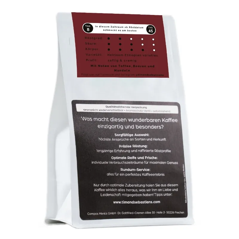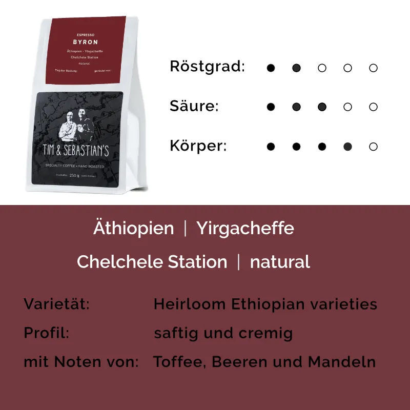 Dieser saftige Kaffee kommt aus der Region Yirgacheffe in Äthiopien und wird in der Washing Station Chelchele aufbereitet und getrocknet. Kaffees aus der Region Yirgacheffe sind bekannt für florale Aromen mit Noten von Zitrusfrüchten. Der Chelchele bekommt durch die natürliche Aufbereitung noch einen ganz besonderen Touch: einen ausdrucksstarken Beerengeschmack, der an reife Johannisbeeren erinnert.Was ist eigentlich eine Washing Station? In Äthiopien leben viele Familien vom Kaffeeanbau, doch nicht jede Familie hat die Maschinerie und die Kapazitäten, um den Kaffee weiterzuverarbeiten. Daher gibt es in Äthiopien in jedem größeren Ort Washing Stations, zu denen die Kleinbauern ihre Kaffeekirschen bringen. Dort werden Sie auch direkt bezahlt und die Station übernimmt nun das Processing (die Weiterverarbeitung).