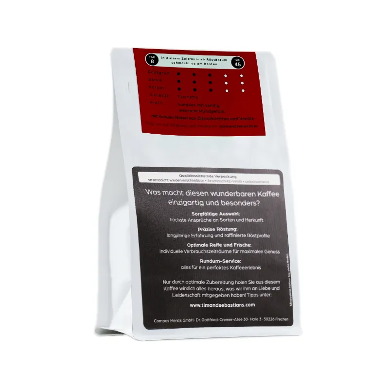 Emilia hat ihre optimale Aromaentwicklung zwischen dem 7. und dem 45. Tag nach der Röstung.